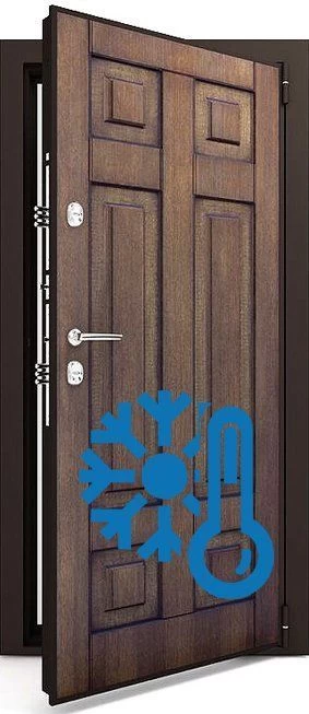 Как работают входные двери с терморазрывом. Известно, что передача тепла идет от теплого к холодному. Представим, что в доме +23, а на улице – 25. Металл дверей – материал с высокой теплопроводностью. Естественно, дверь быстро остывает и промерзает, либо начинает конденсировать.