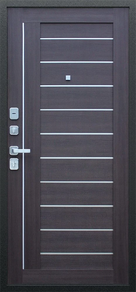 Надежная входная Дверь Соло орех рифленый премиум класса по цене 35 207 руб. Большая толщина стали защитит от проникновения в ваш дом, квартиру или коттедж. Используется очень качественная фурнитура: замки, цилиндры, ручки, защелки. Покрытие и отделка двери изготовлено под внимательным контролем производителя. Дверь имеет долгий срок службы и гарантию.