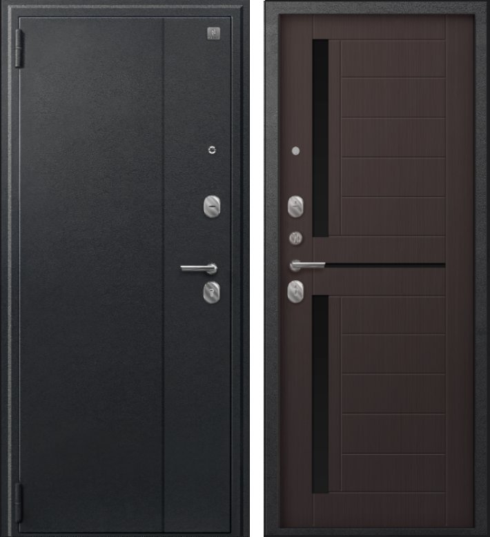 Надежная входная Дверь A-01 черный сатин - лиственница тёмная премиум класса по цене 30 657 руб. Большая толщина стали защитит от проникновения в ваш дом, квартиру или коттедж. Используется очень качественная фурнитура: замки, цилиндры, ручки, защелки. Покрытие и отделка двери изготовлено под внимательным контролем производителя. Дверь имеет долгий срок службы и гарантию.